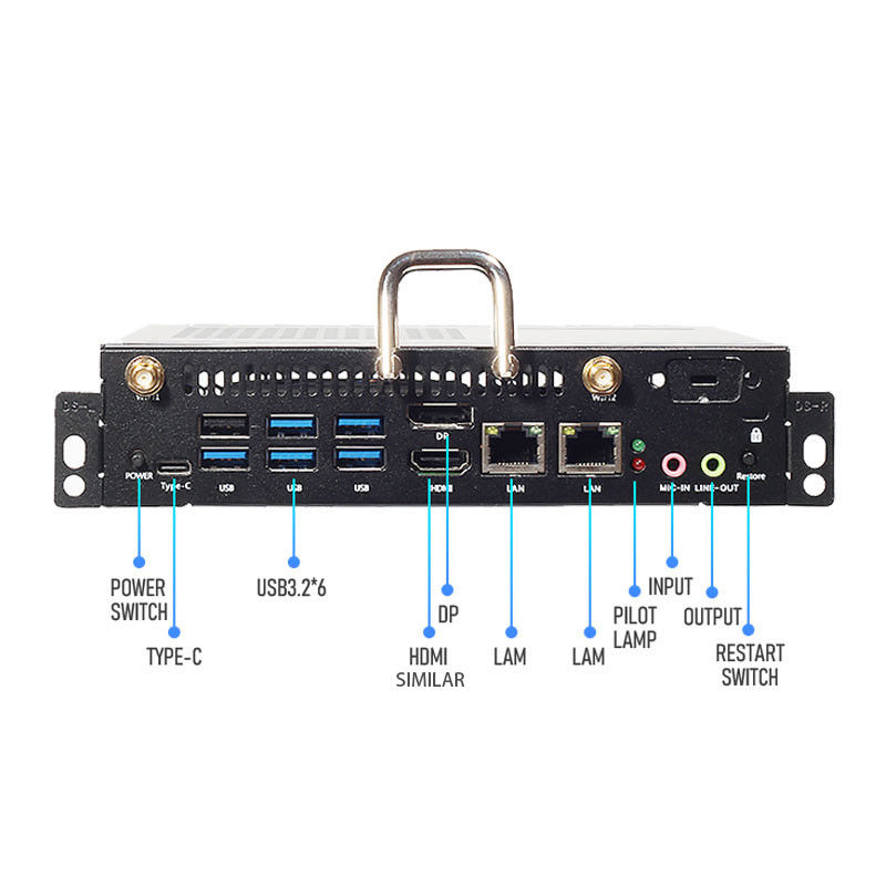 De OPS PC-module is een krachtig en slim apparaat dat is uitgerust met Intel H81/Q87/B85/H110 chipset en 12V DC-in stroomtoevoer.en Realtek ALC662 6-kanaals HD-audio-uitgangDe OPS PC-module is een ideale keuze voor een verscheidenheid aan toepassingen, zoals digitale borden, kiosken,en POS-systemenHet is perfect voor commerciële en industriële toepassingen die krachtige rekenprestaties vereisen en biedt superieure schaalbaarheid en flexibiliteit.