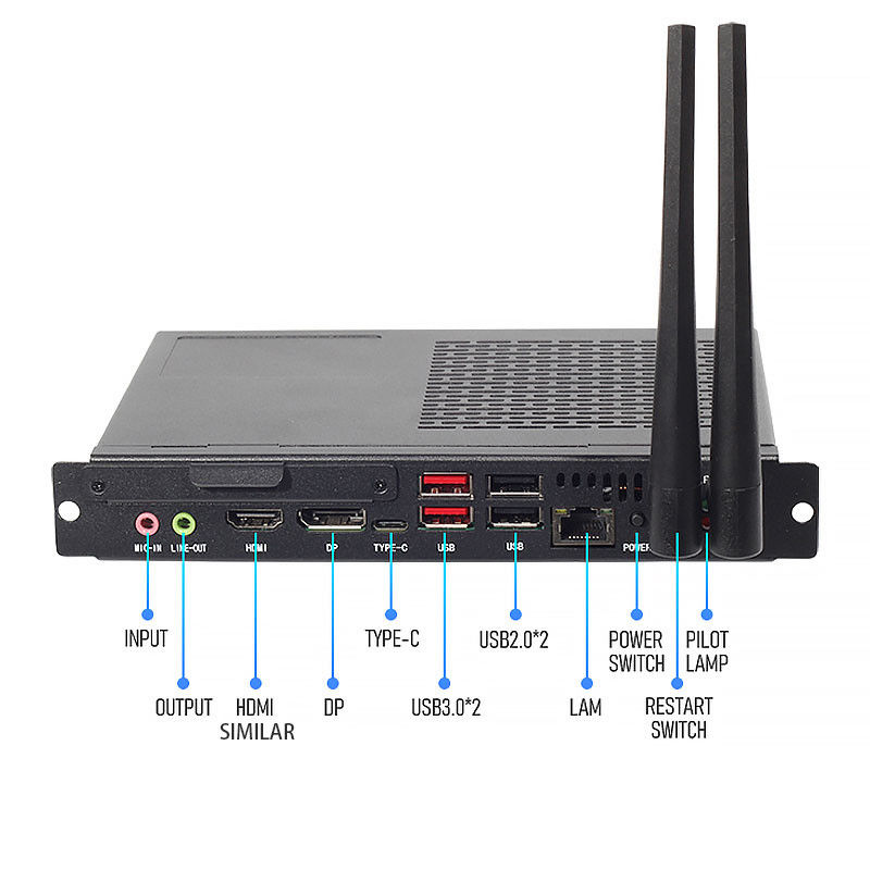 Onze OPS-PC-module beschikt over I/O: 4 x USB 3.0, 4 x USB 2.0, 2 X COM, 1 X LPT, 2 X Intel I210AT Gigabit Ethernet, 1 X HD-MI, 1 X VGA, en 12 V DC-in stroomvoorziening.zodat u uw apparaat gemakkelijk kunt aanpassen.